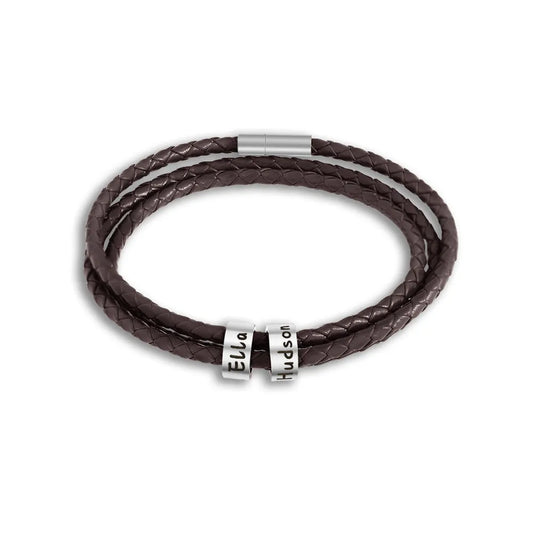 BRACELET EN CUIR AVEC NOMS PERSONNALISÉS EN ACIER