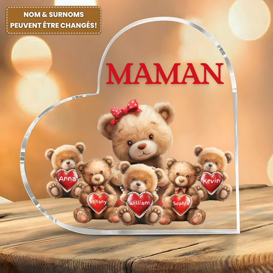 COEUR EN ACRYLIQUE PERSONNALISÉE MAMAN/MAMIE OURS AVEC ENFANTS