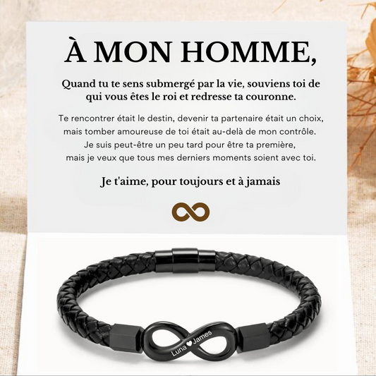 À MON HOMME - BRACELET EN CUIR INFINI PERSONNALISÉ