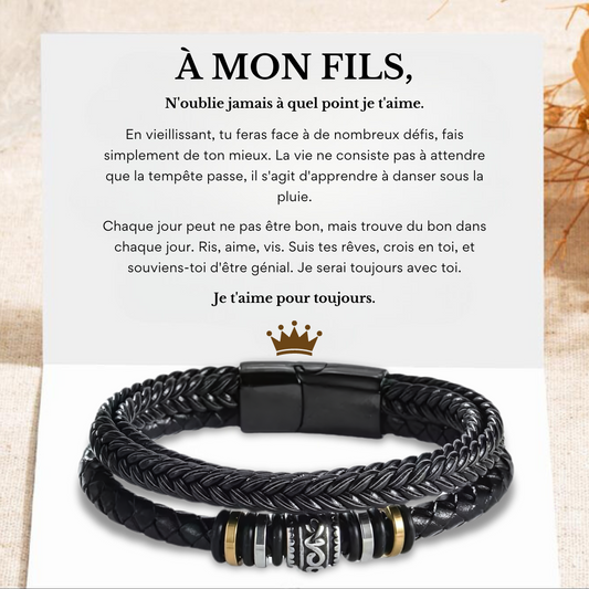À MON PETIT-FILS - BRACELET EN CUIR TRIPLE