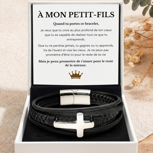 À MON PETIT-FILS - BRACELET CROIX CUIR TRIPLE