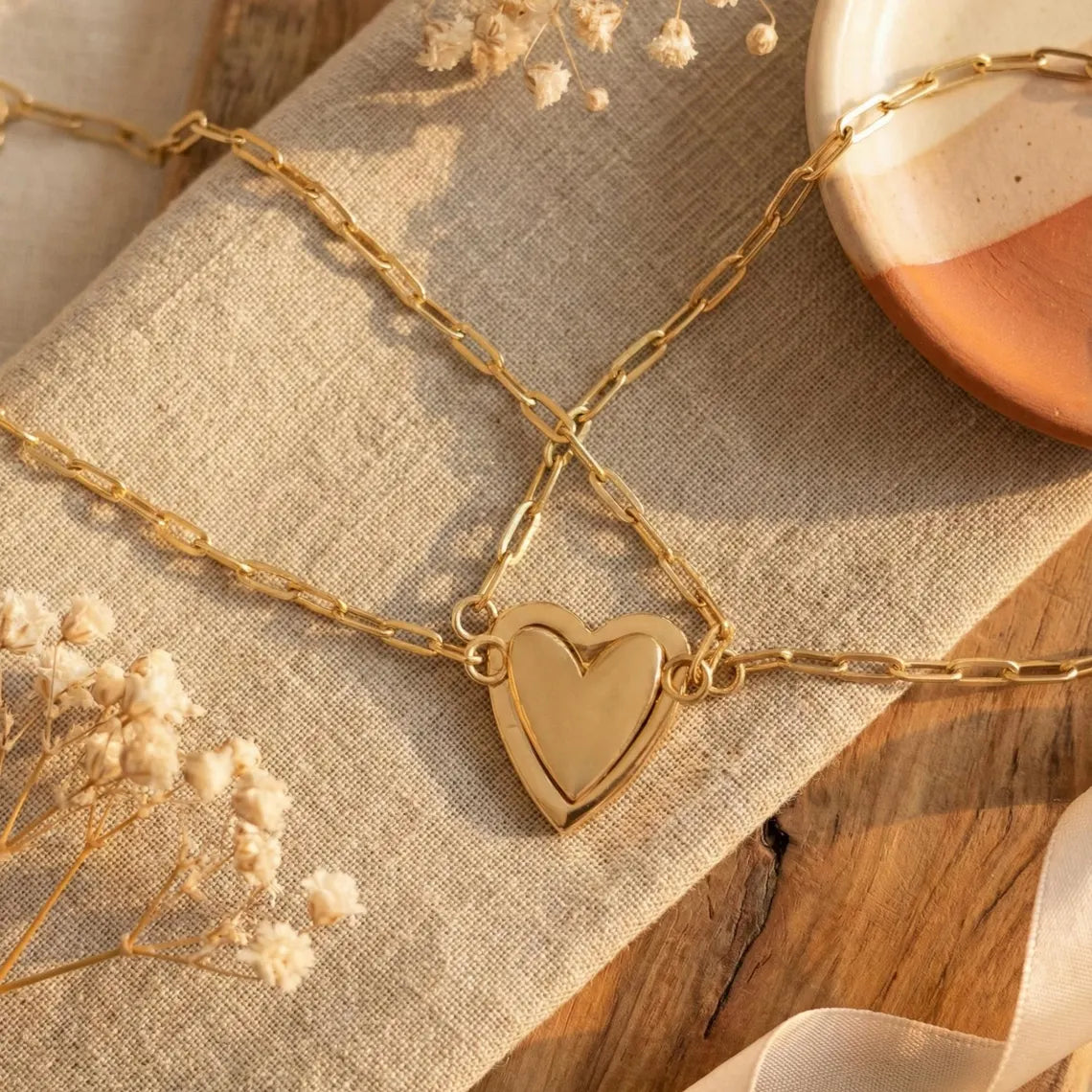 Plus qu'un simple accessoire, notre Bracelet Cœurs Assortis est un symbole de votre lien incassable. Cet ensemble de deux bracelets ornés de délicats pendentifs en forme de cœur célèbre l'amour entre mères et filles, vous rappelant que vous portez toujours un morceau du cœur de l'autre.